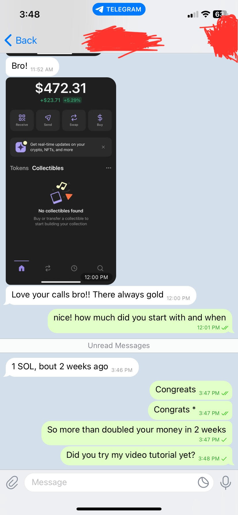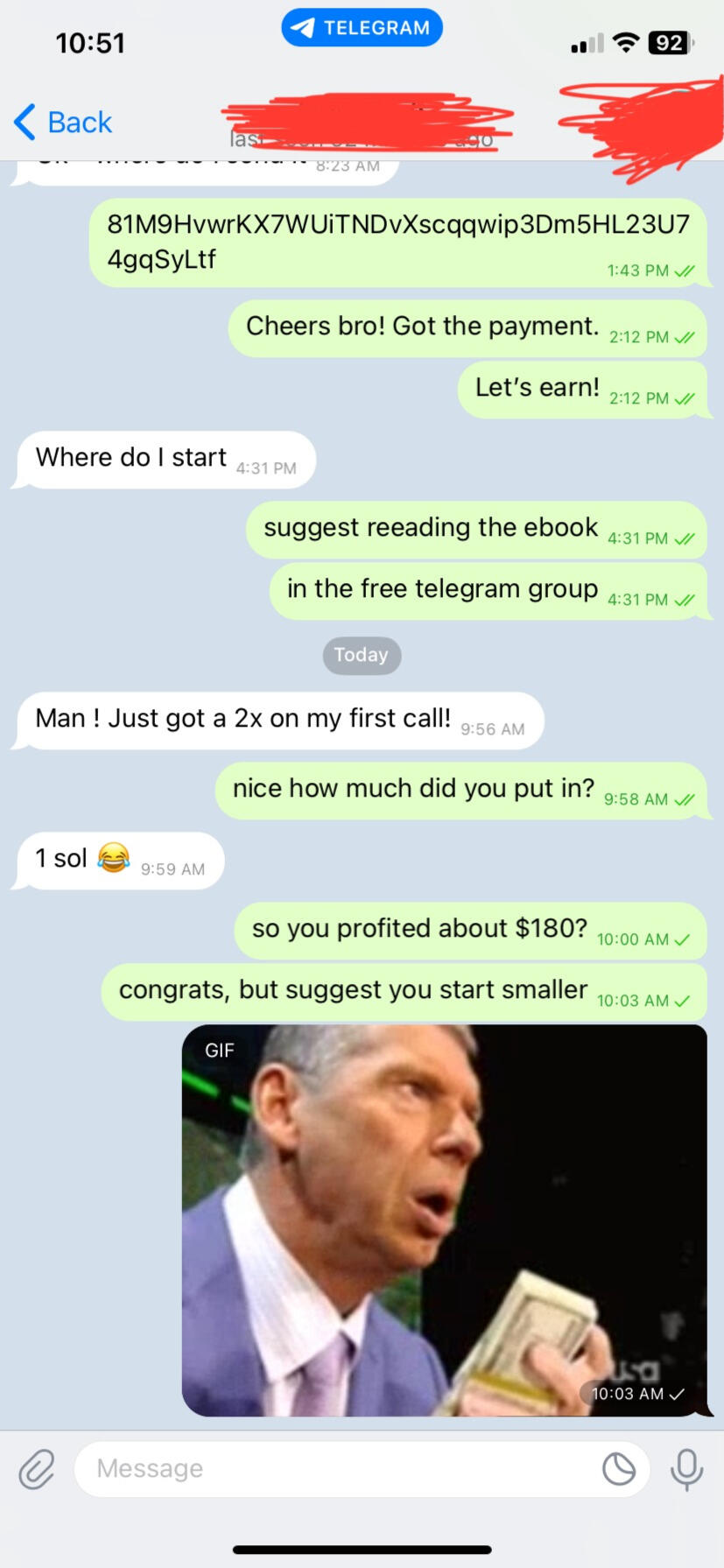 All through history there have been two groups.Those who were born into privilege and those that weren’t.The lucky ones got better opportunities, better resources but most importantly: better information.Smart money has always had access to better information and they use it to get richer.But that’s all about to change.On the blockchain, everything is transparent.We may not have access to the same information as smart money, but we can see what they do with that information.Imagine being able to copy Warren Buffett’s trades in real time.That’s what we do with crypto whales.We’ve tracked down the 150 most profitable wallets on the Solana blockchain and we watch what they do constantly.Our bot watches them 24 hours a day, 7 days a week - and sends automatic alerts to our Group as soon as they buy a new token.We’ve struck gold many times.>> Our bot called $USELESS before it did a 2175x.>> Our bot called $AVO before it did a 285x.>> Our bot called $TOKABU before it did a 215x.